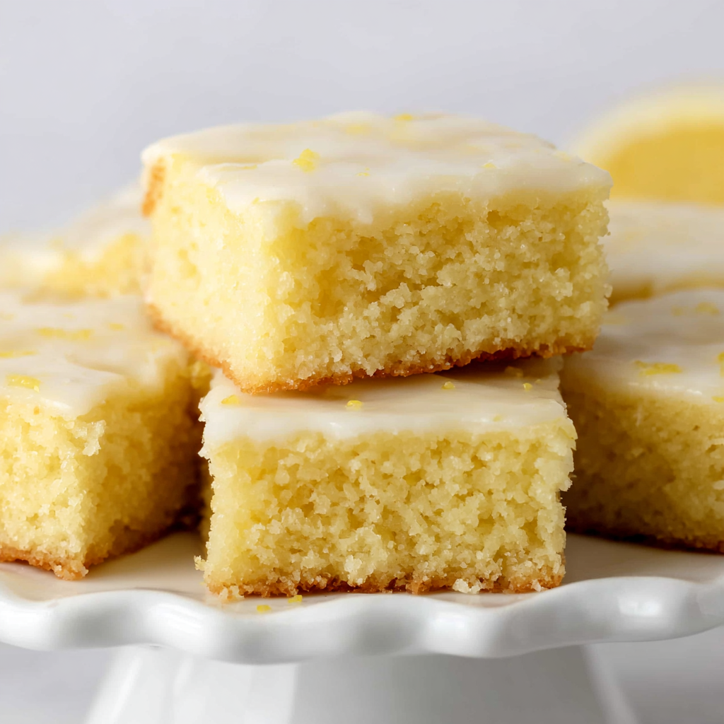 The fresh lemon zest and juice really shine here, especially with the smooth glaze layered on top.