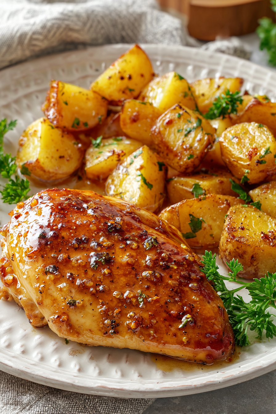 As the chicken roasts, the honey-butter glaze caramelizes in the oven, the potatoes turn golden and tender, and the kitchen fills with that unmistakable cozy, savory-sweet aroma that signals dinner is almost ready.