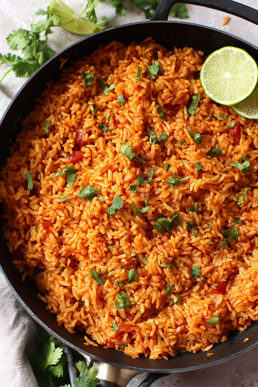 There’s something deeply comforting about a pan of Spanish rice gently simmering on the stove.