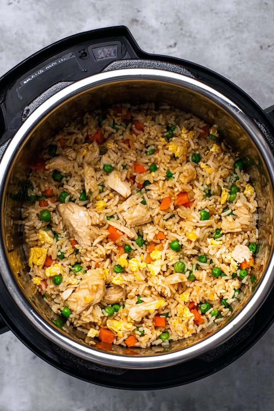 This Instant Pot version has quickly become a weeknight favorite in our house. Instead of juggling multiple pans on the stove, everything cooks right in the pot, resulting in fluffy rice, tender chicken, and classic fried rice flavors with minimal effort.
