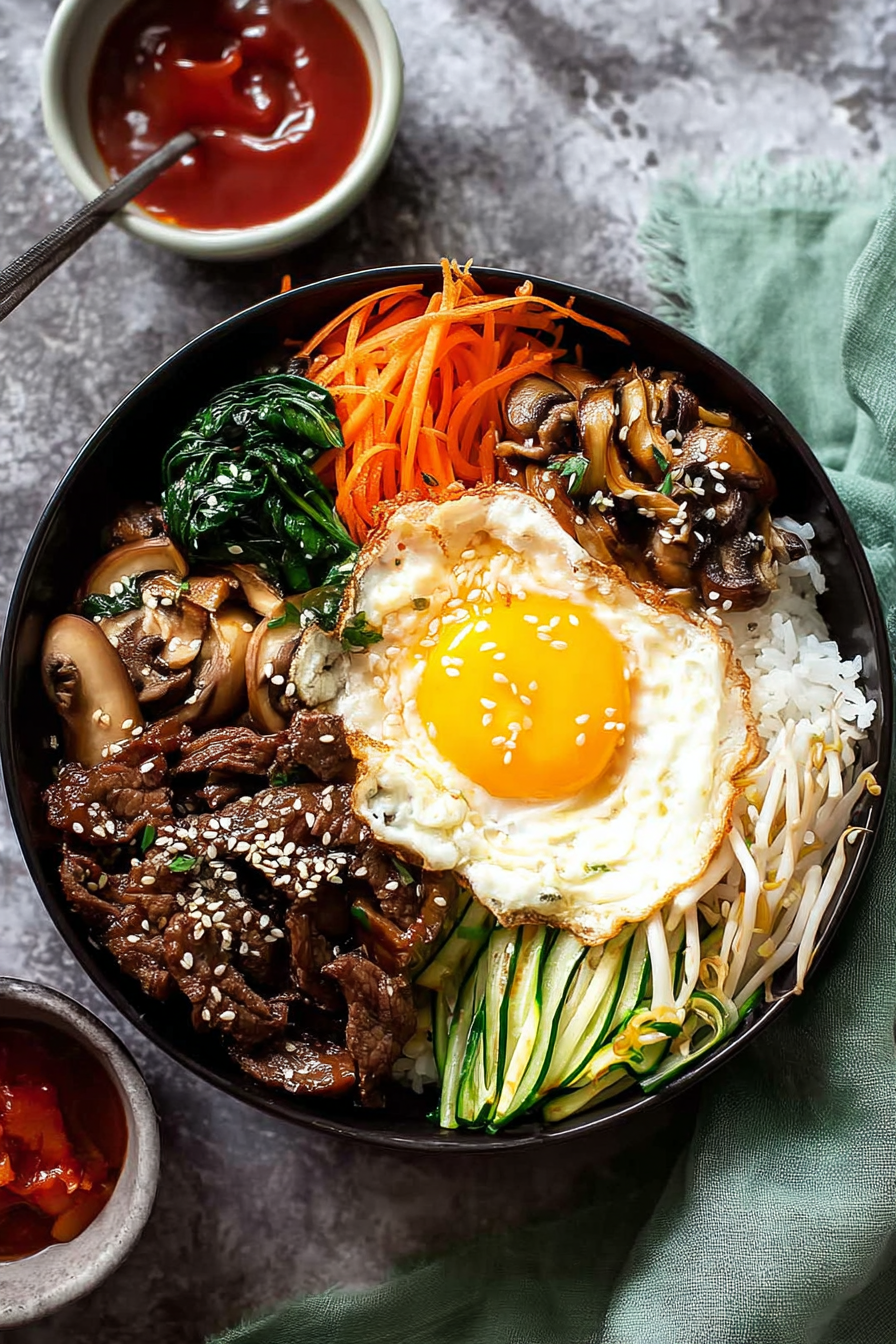 Absolutely! Bibimbap is super flexible. Skip the beef and load up on veggies, or throw in tofu if you want a protein boost. The magic is in the sauce — once that’s on, everything tastes amazing.