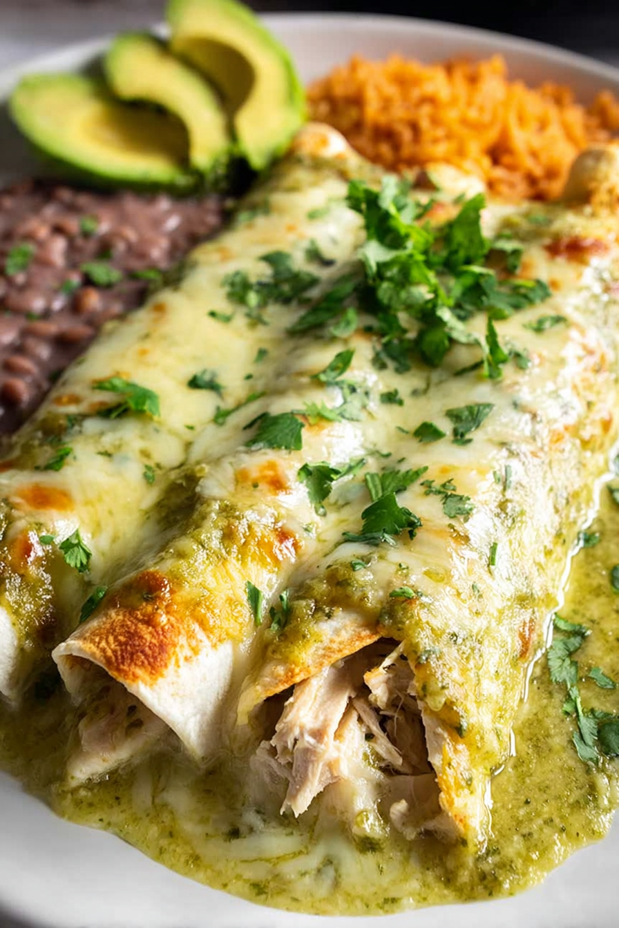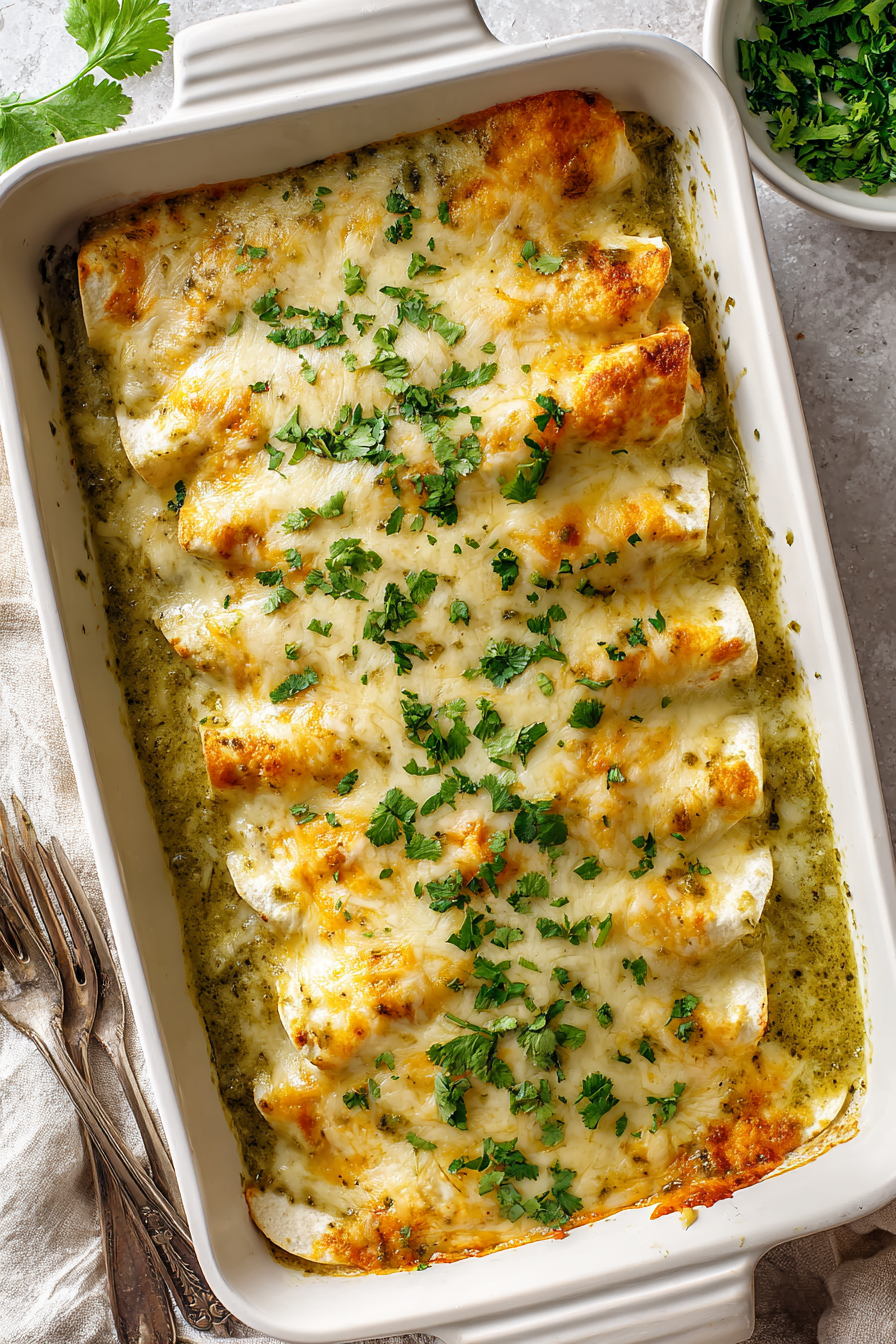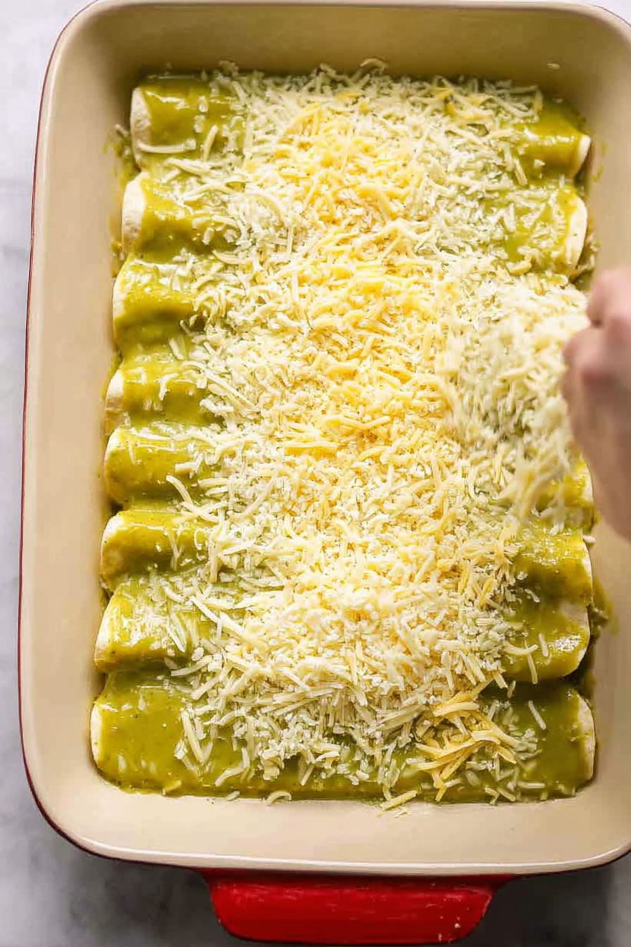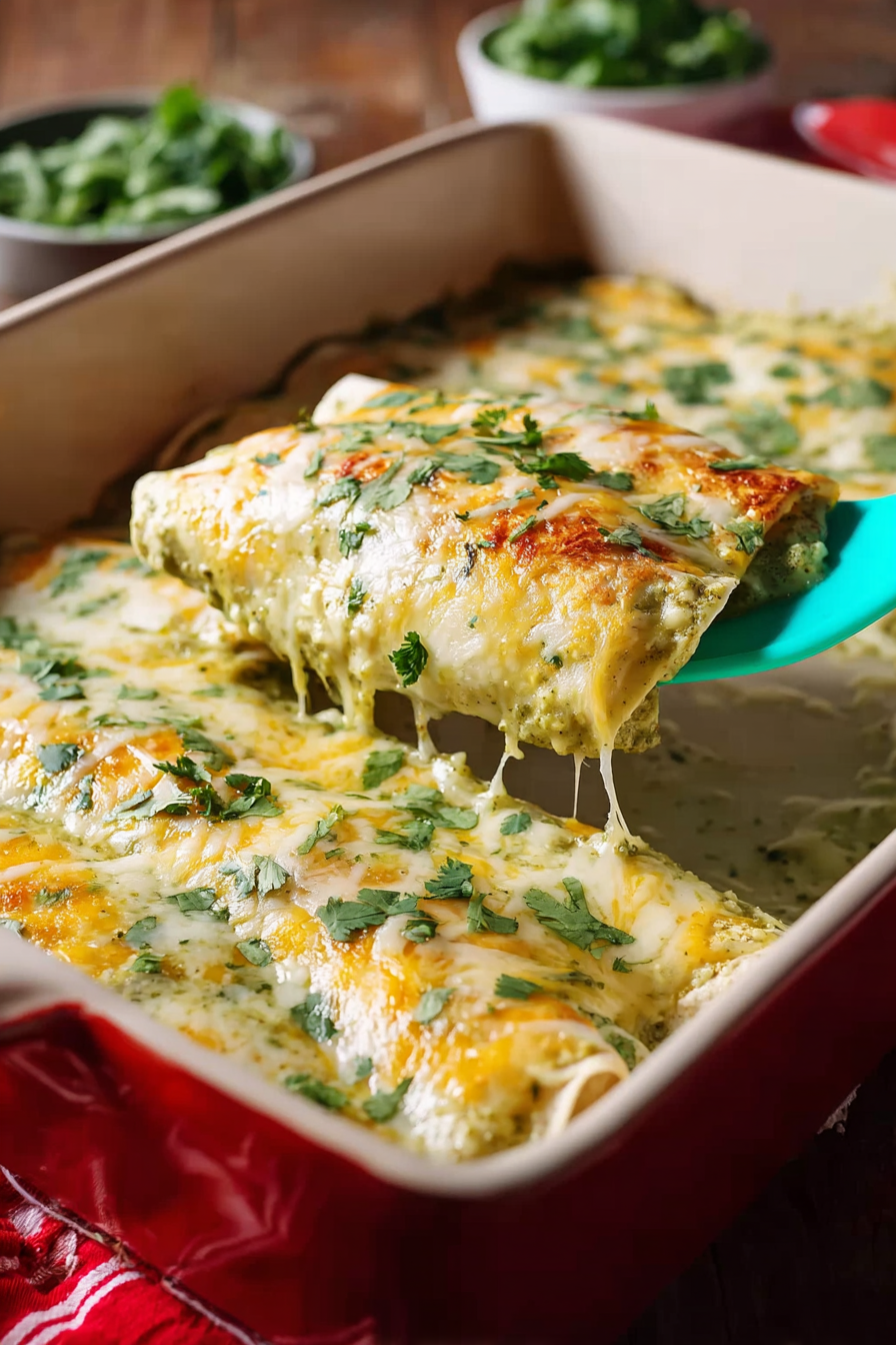There’s something comforting about rolling tortillas, stirring a creamy chicken filling, and letting everything bake together in a bubbling green sauce.