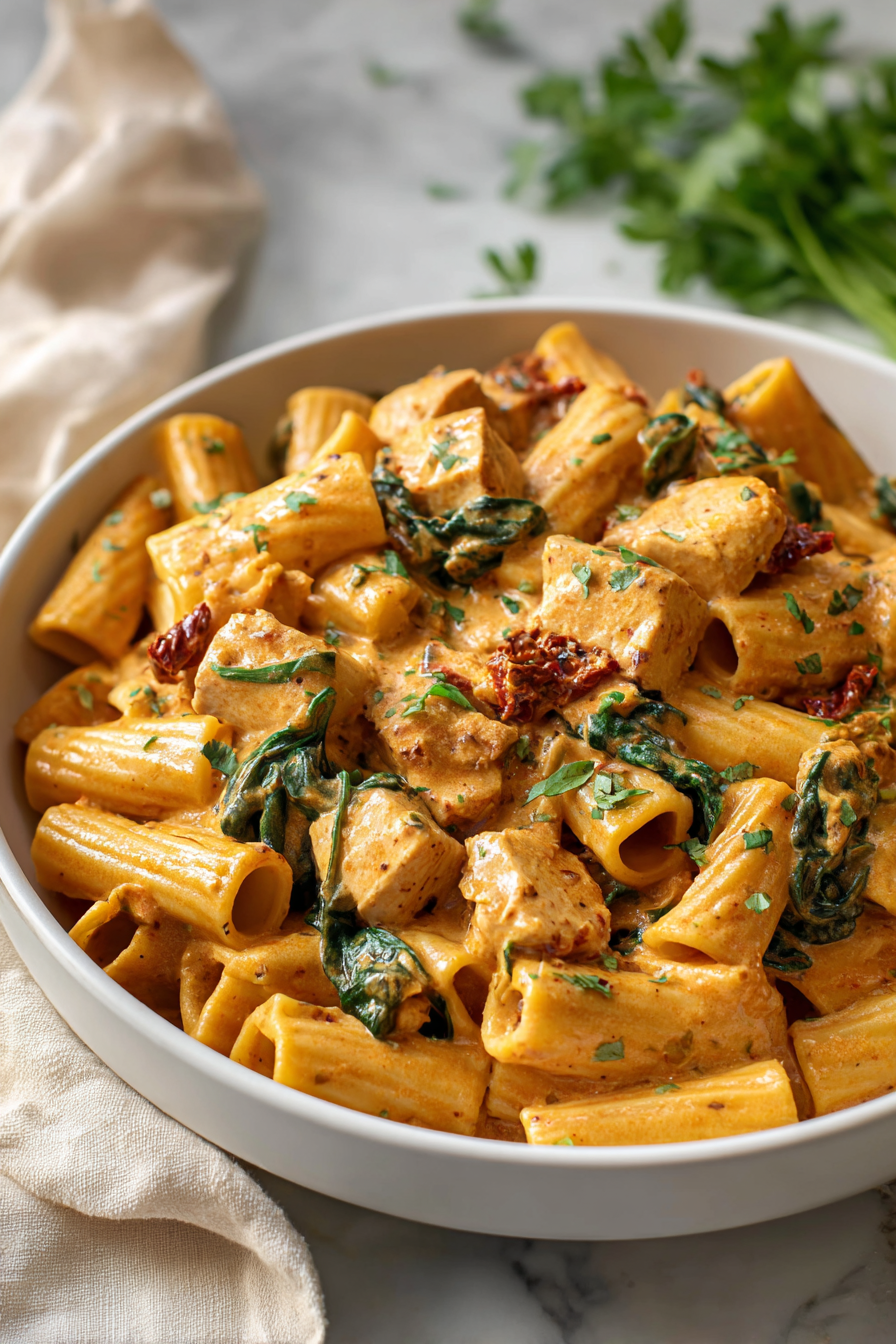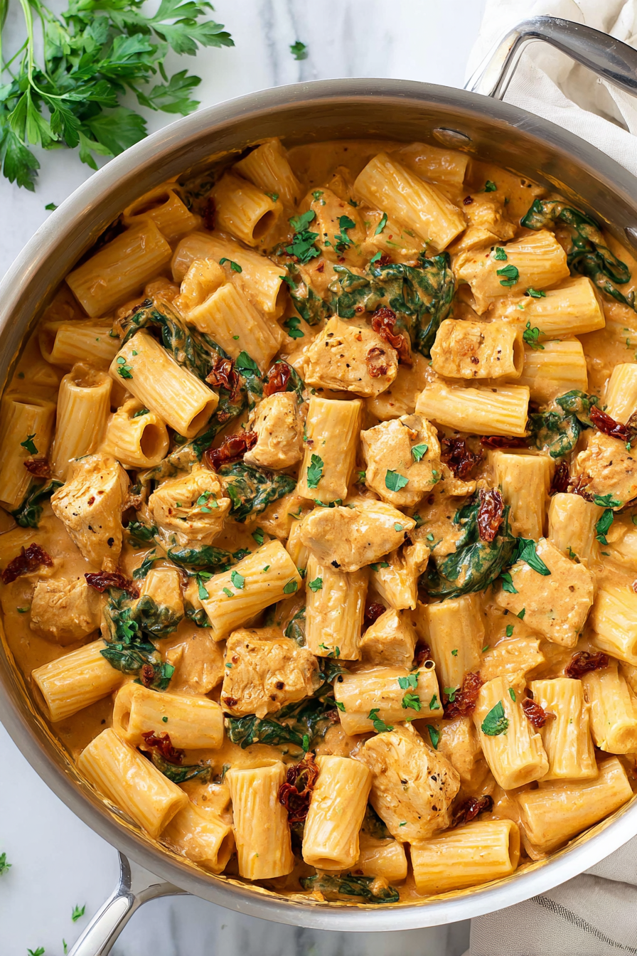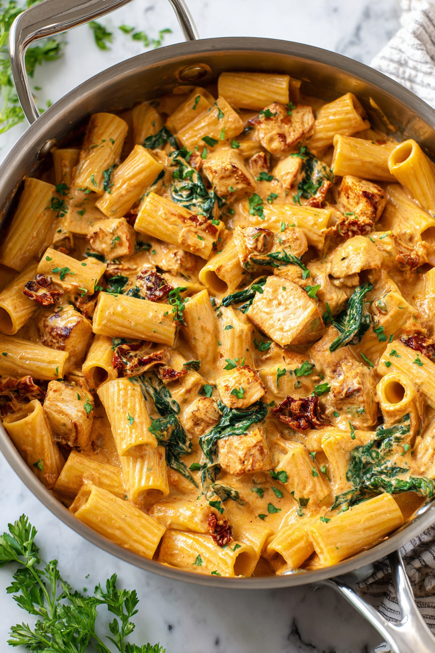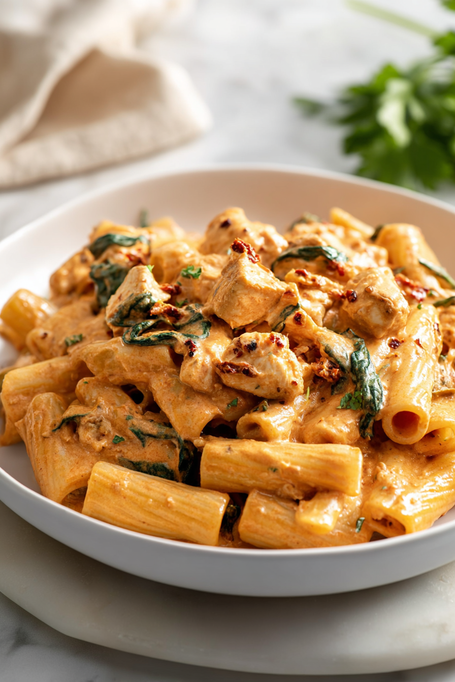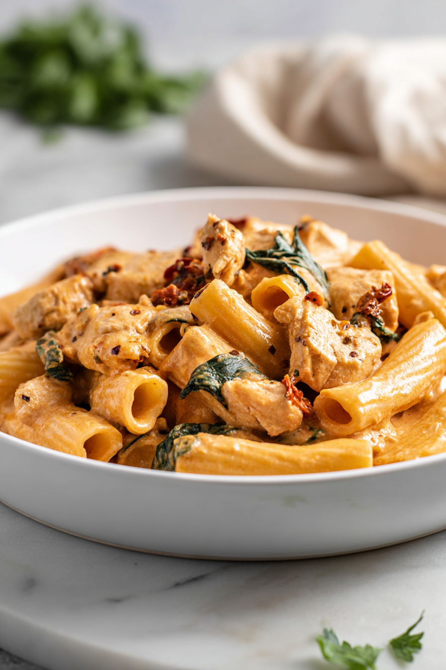 When everything comes together, tender chicken and pasta are coated in a rich tomato cream sauce that’s smooth, flavorful, and incredibly satisfying.