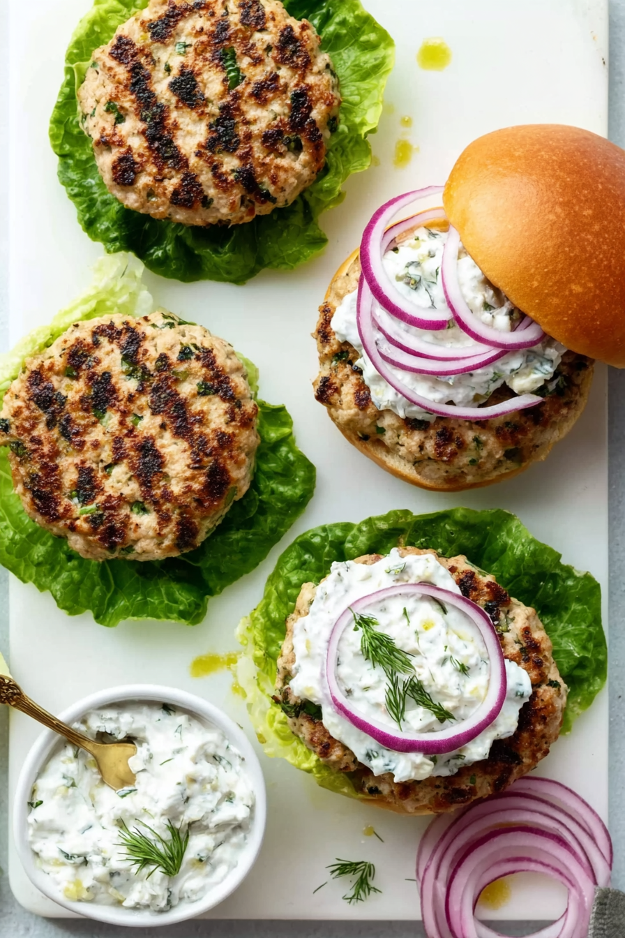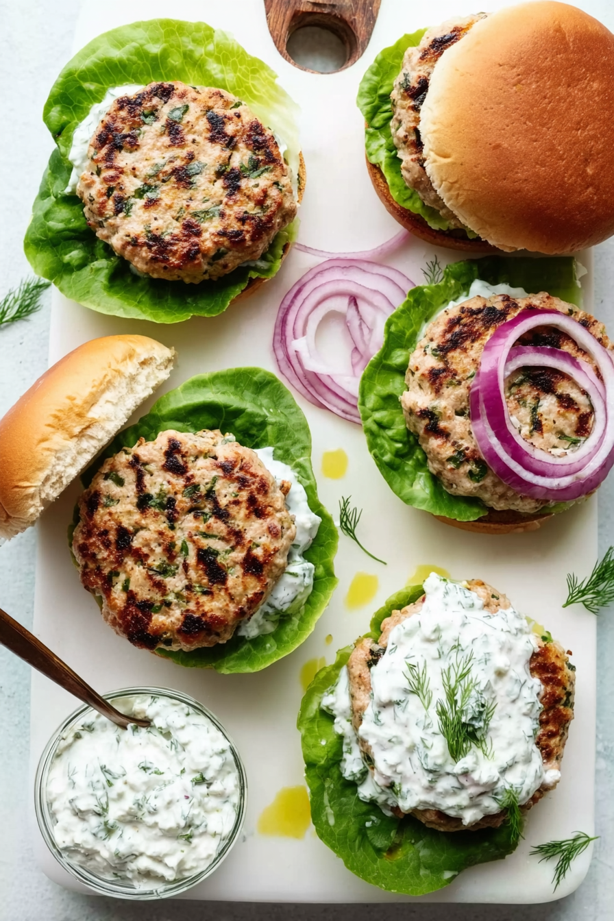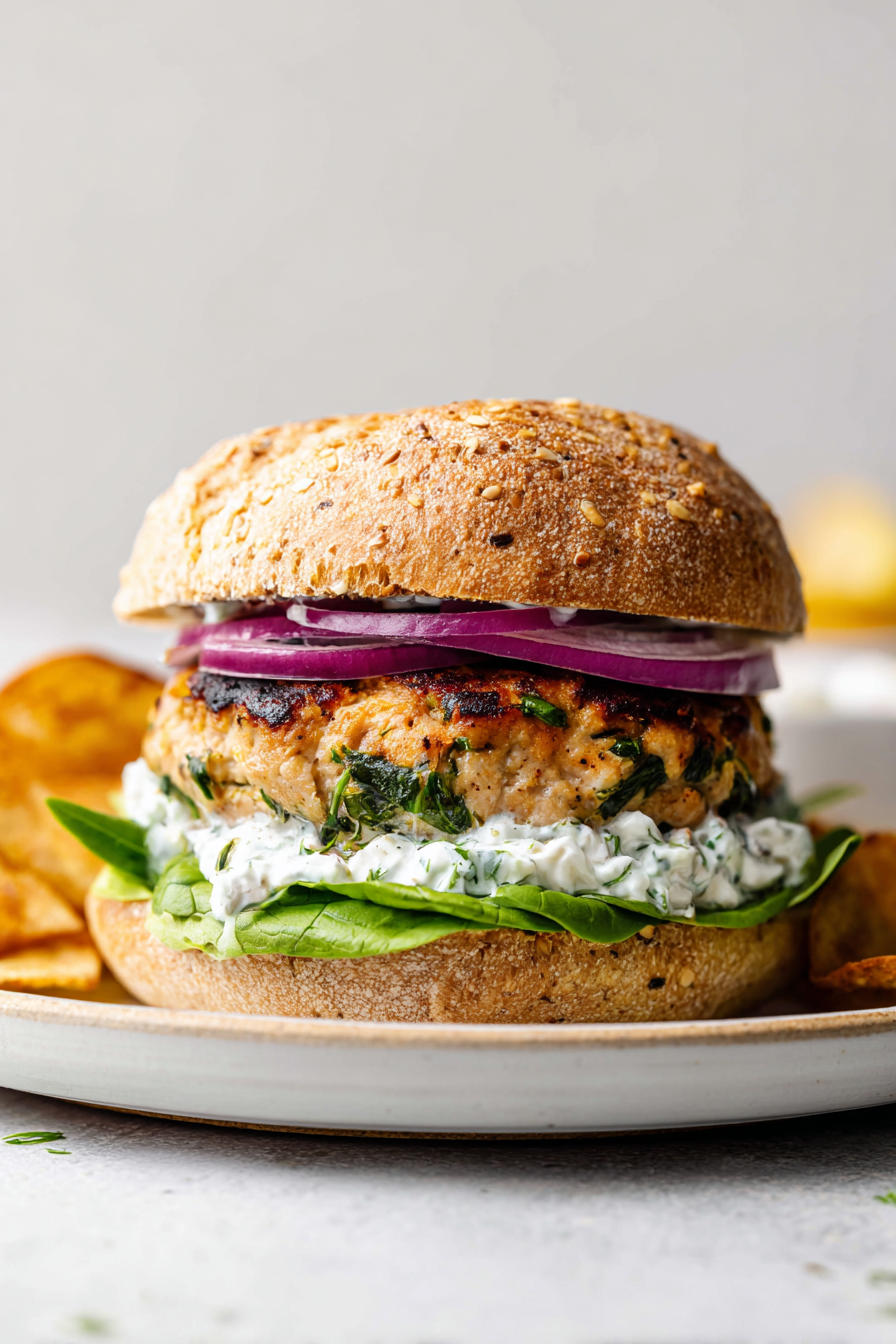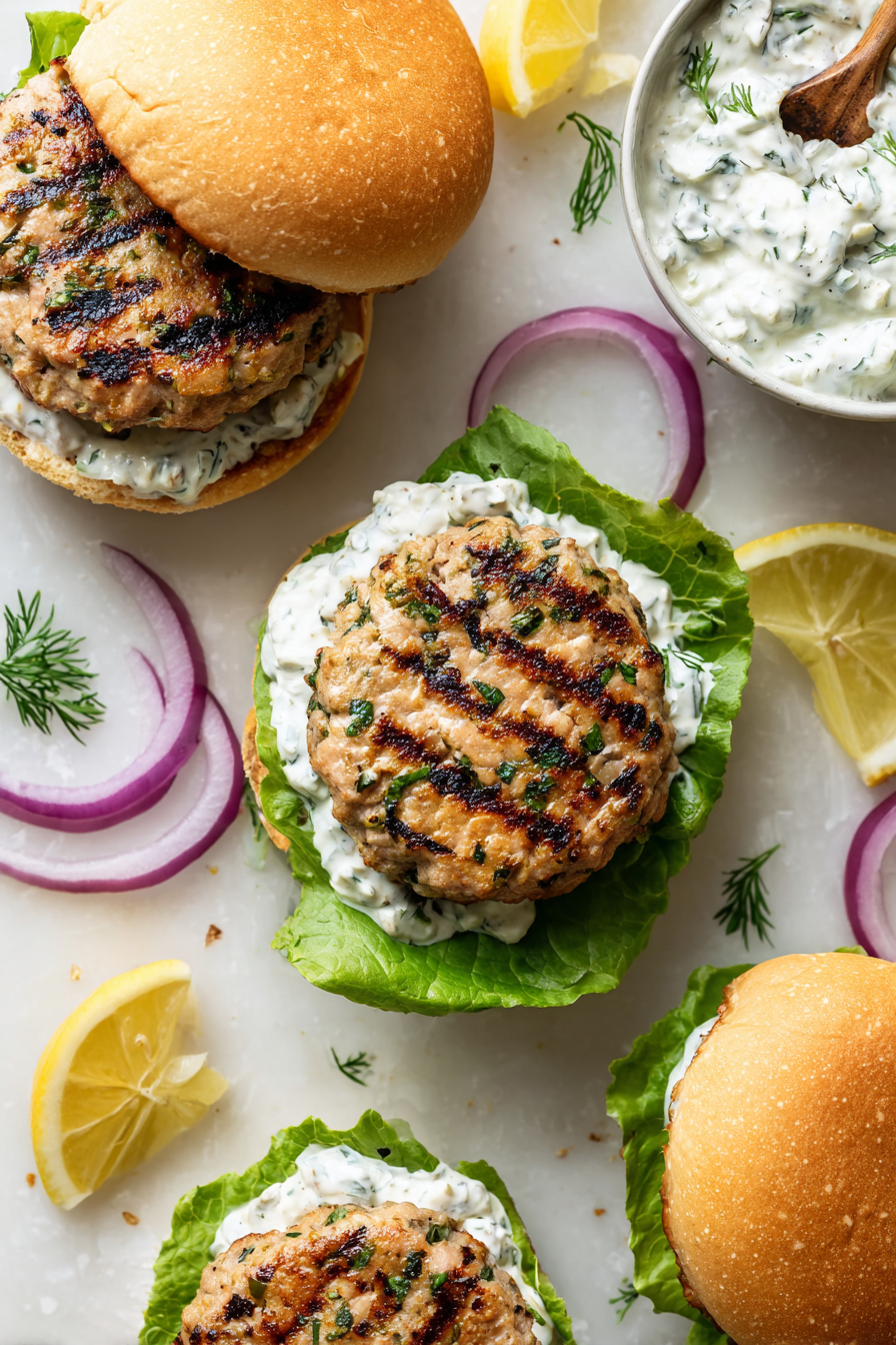 Quick Greek-Style Turkey Burgers with Creamy Tzatziki Sauce