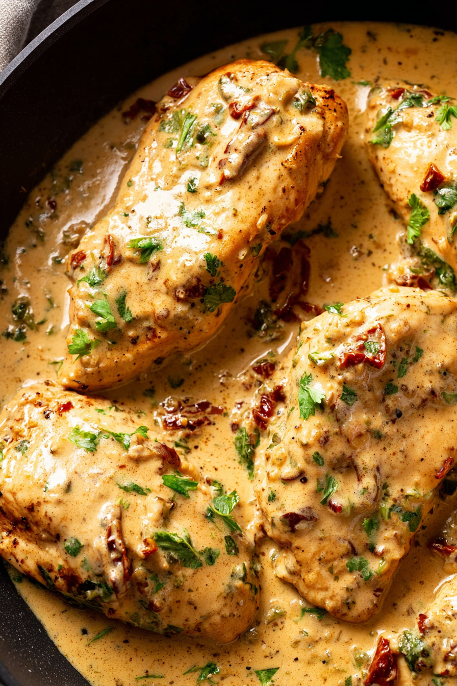 - Chicken Breasts – Boneless chicken breasts cook up tender and juicy, making them perfect for soaking up the creamy sauce. You can slice them in half for quicker cooking or keep them whole.