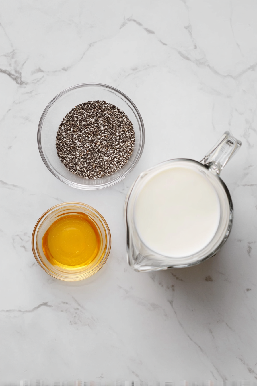 - Chia Seeds – These tiny seeds are the star of the recipe. They absorb liquid as they rest, creating the thick, pudding-like texture while adding fiber, protein, and healthy fats.