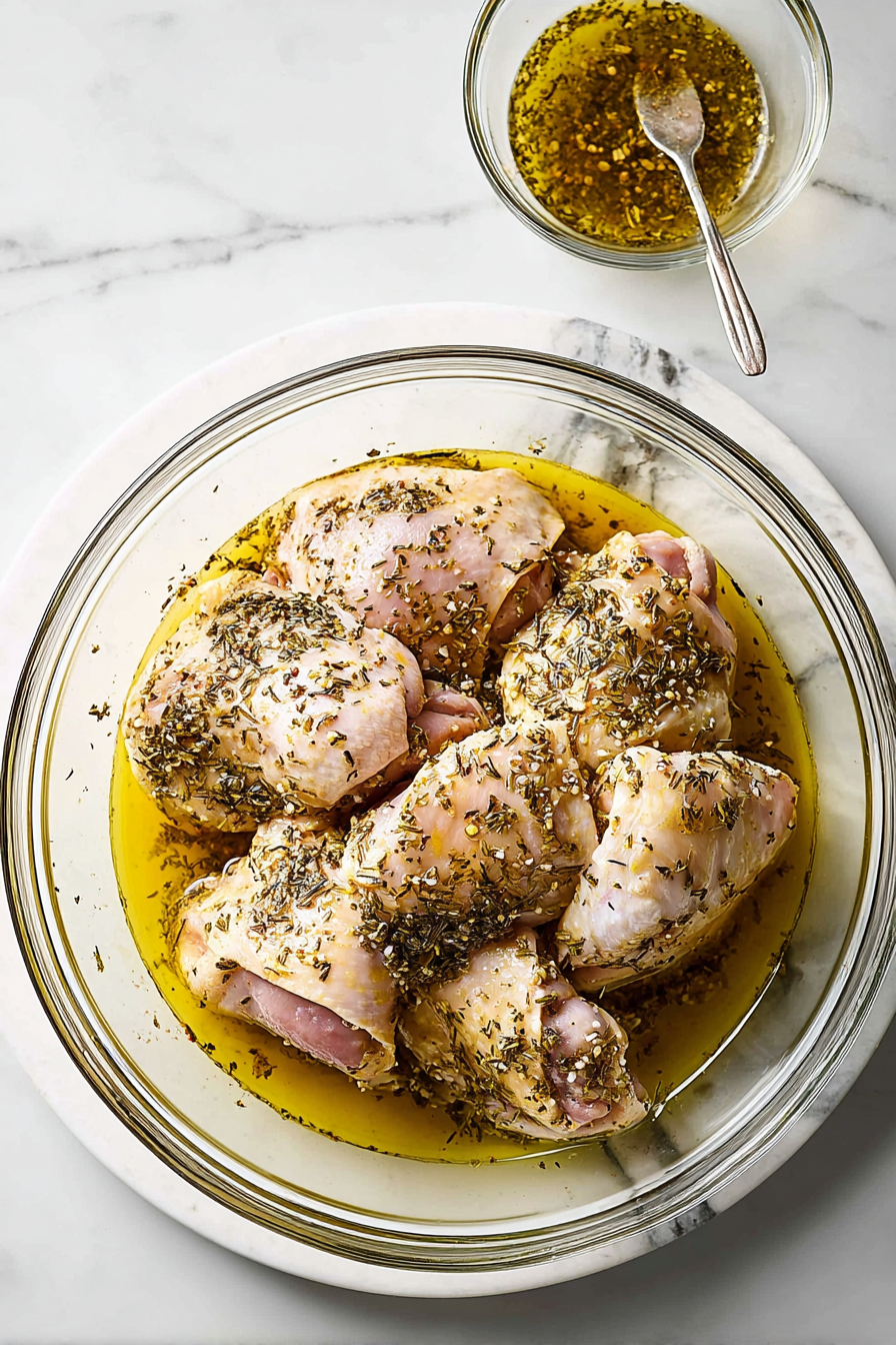 - Extra-Virgin Olive Oil – Forms the base of the marinade, adding richness while helping the herbs and lemon coat the chicken evenly.