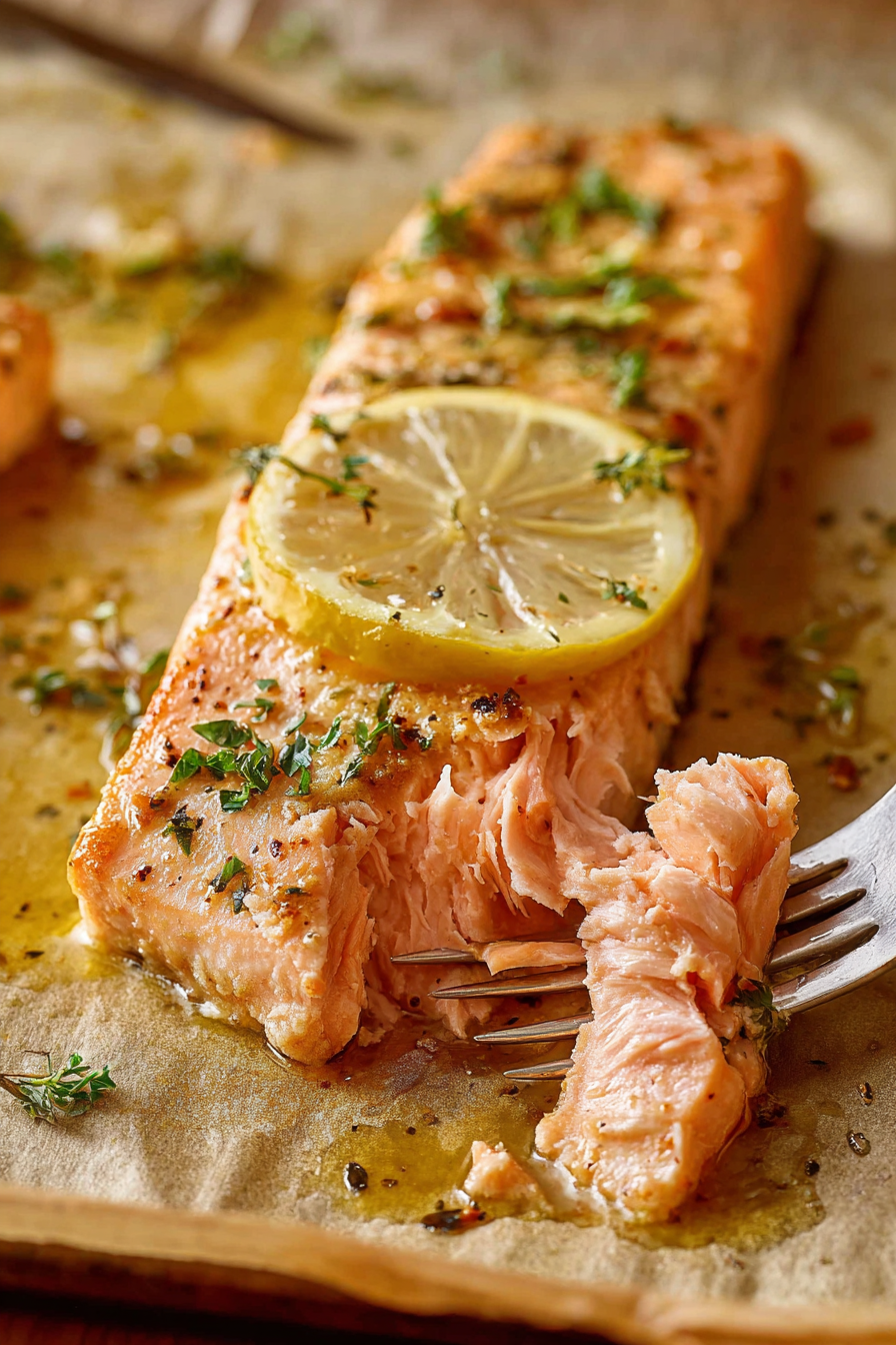 On busy evenings, there’s something comforting about sliding a tray of salmon into a hot oven, knowing it will come out tender, flaky, and full of bright lemon flavor every time.