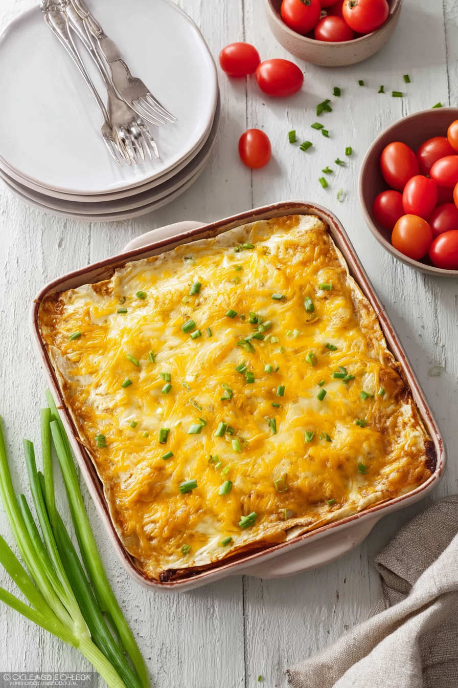 - Green Chili Enchilada Sauce – brings everything together with bold enchilada flavor and keeps the casserole moist while baking.
